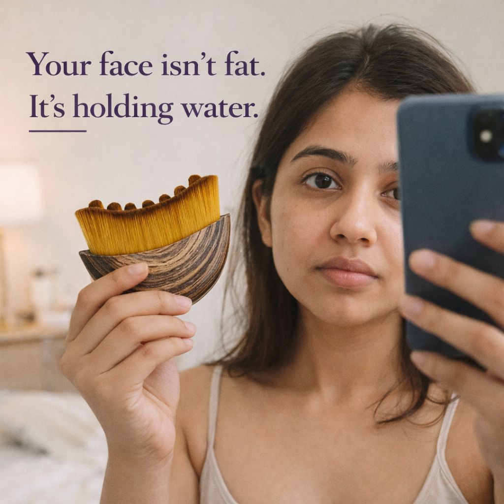 Facial puffiness is often caused by fluid buildup overnight, not weight or aging. When fluid lingers under the skin, the face can look swollen, tired, and less defined—especially in the morning.