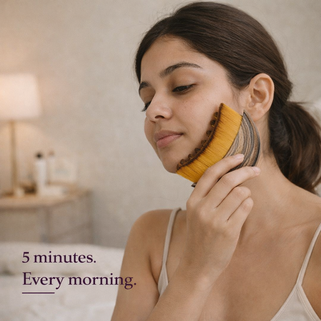 Gentle brushing encourages trapped fluid to move, helping your face look less swollen and more relaxed after waking up. With regular use, the morning “puffy” look softens, revealing clearer facial contours without irritation.